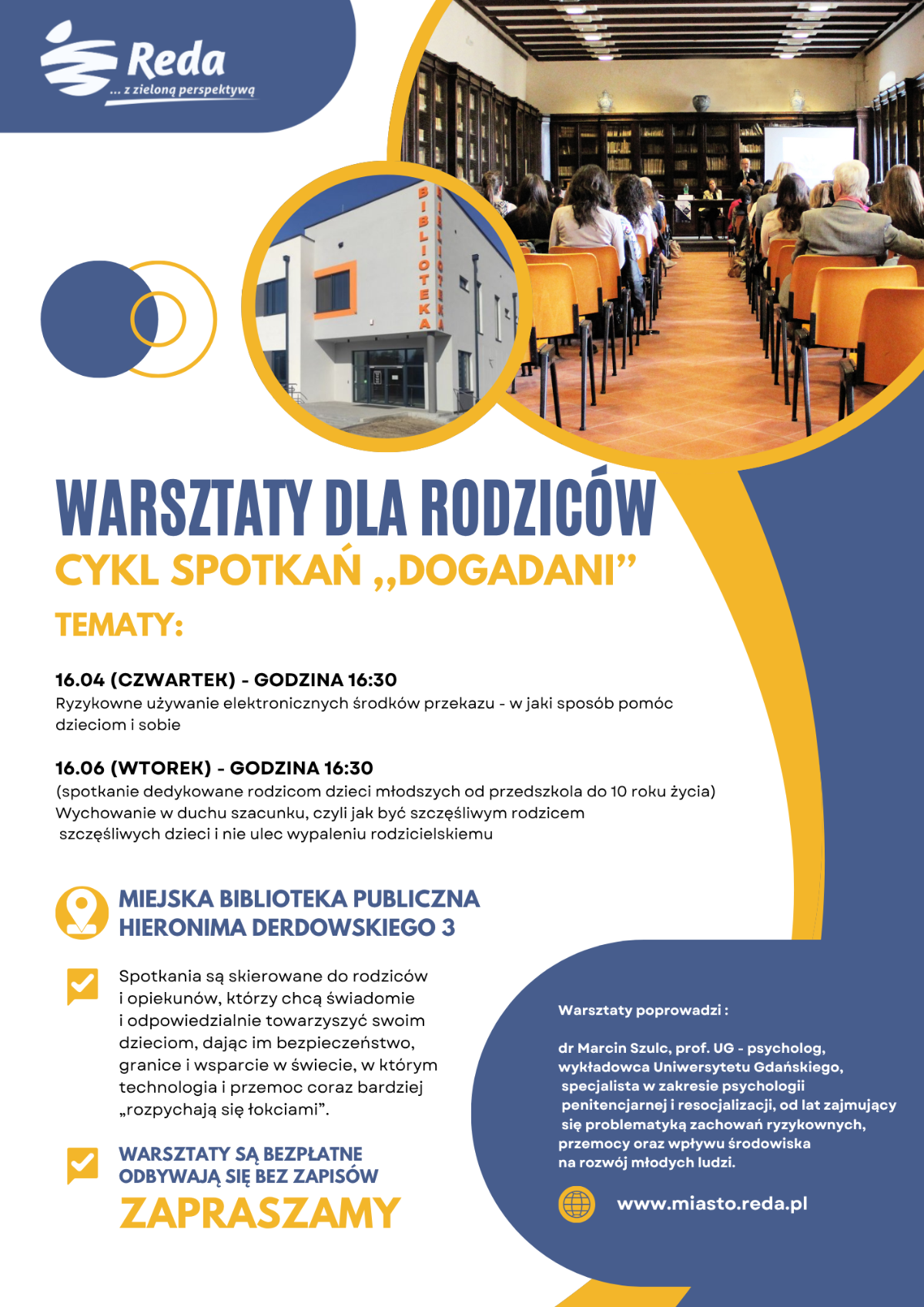 Po bardzo udanym i licznie odwiedzonym pierwszym spotkaniu z cyklu „Dogadani”, nadchodzi czas na kolejne warsztaty skierowane do rodziców i opiekunów. Już 16 kwietnia o godz. 16:30 mieszkańcy będą mieli okazję ponownie spotkać się i porozmawiać o wyzwaniach, jakie niesie współczesne wychowanie. Cykl organizowany przez Urząd Miasta w Redzie powstał z myślą o osobach, które chcą lepiej rozumieć swoje dzieci i świadomie towarzyszyć im w dorastaniu. Jak pokazało pierwsze spotkanie, temat ten jest niezwykle ważny i potrzebny – frekwencja oraz zaangażowanie uczestników potwierdziły, że rodzice szukają rzetelnej wiedzy i praktycznego wsparcia.